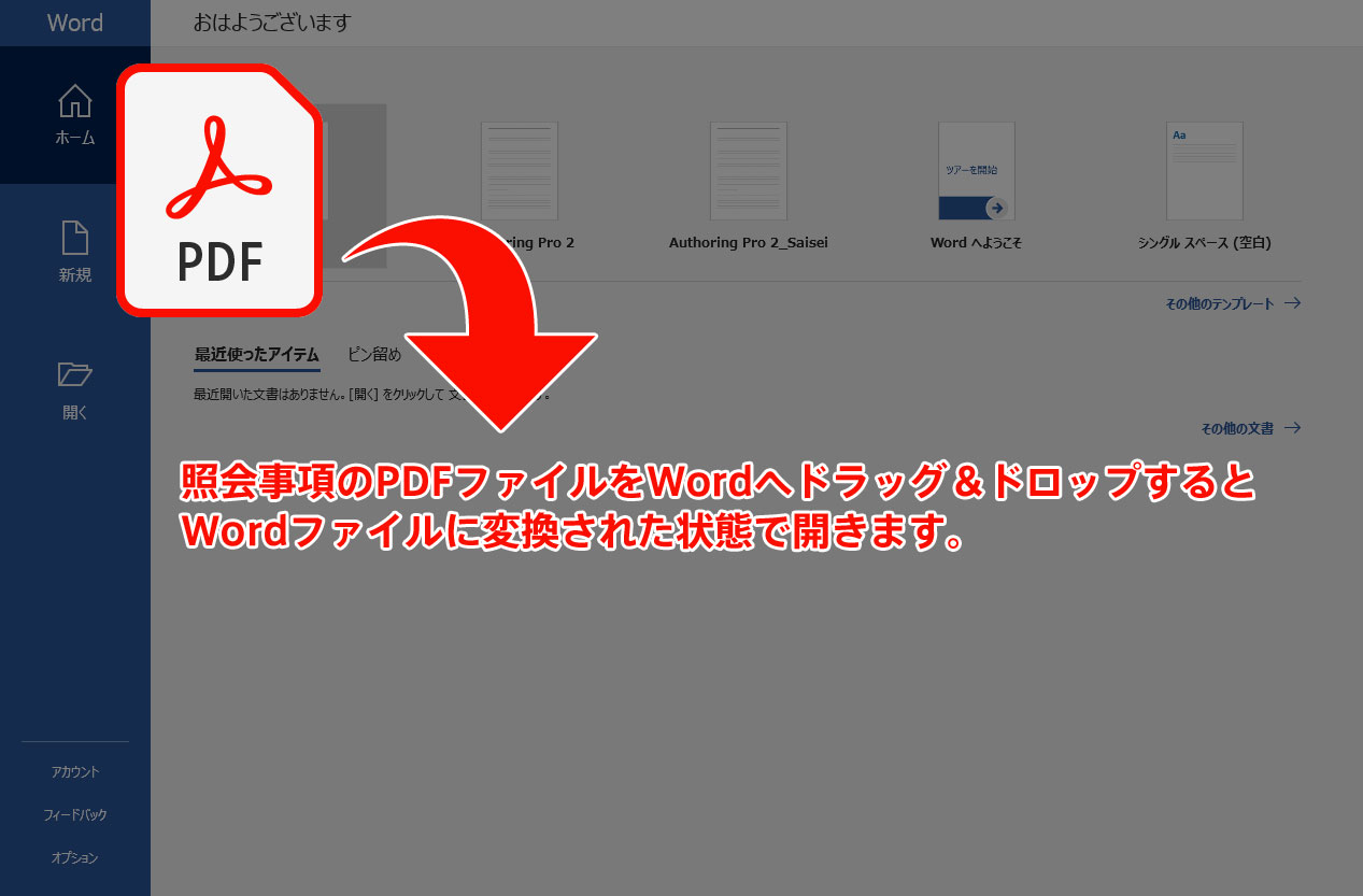 審査当局から送られてくる照会事項のPDFファイルをWordファイルとして開きます。