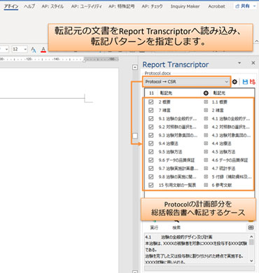 Report Transcriptorは、製薬業界で作成されるレポート類を転記するためのMicrosoft®Wordのアドインツールです。